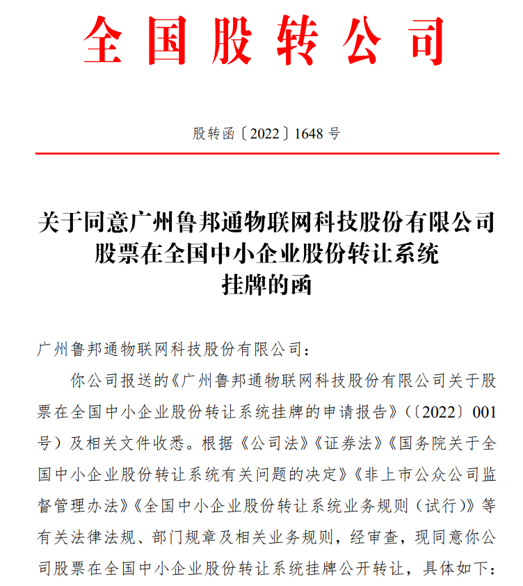 登陆新三板,是鲁邦通发展道路上的重要里程碑,标志着鲁邦通正式迈入新的发展阶段,站在新的起点,面向新的形势,鲁邦通将坚持“让连接更可靠,让设备更智能,让服务更真诚”的使命,持续专注物联网行业的研发与创新,精益求精,持续地为客户提供5G+AIoT工业物联网解决方案,为客户、股东、投资者带来更好的服务与回报。