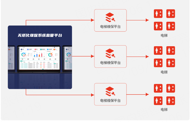 鲁邦通提供免费对接政府监控平台,满足政府电梯安全监管需求,无纸化维保系统支持通过数据接口将电梯维保企业资质数据、电梯数据、维保数据同步到政府监管平台。